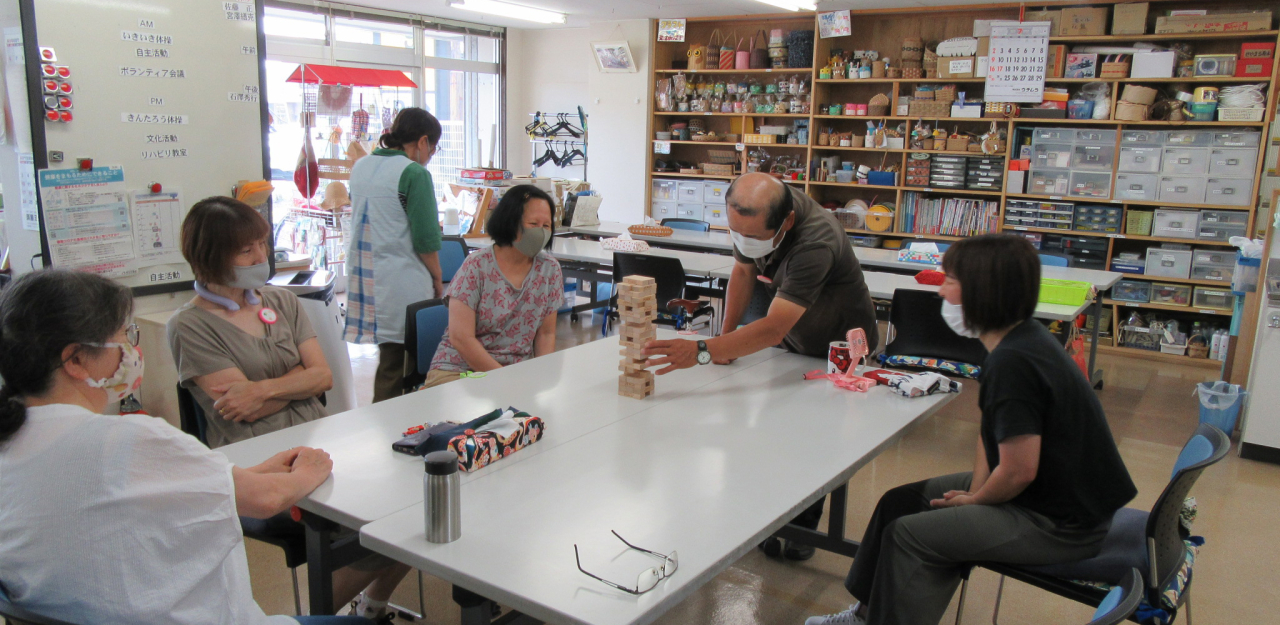 脳卒中等による障害がある在宅の障害者が、仲間とふれあいながら創作活動やレクリエーション、生活リハビリ、地域交流等を行っています。